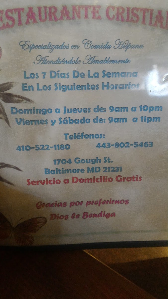 Restaurante Cristiano Jireh Menu