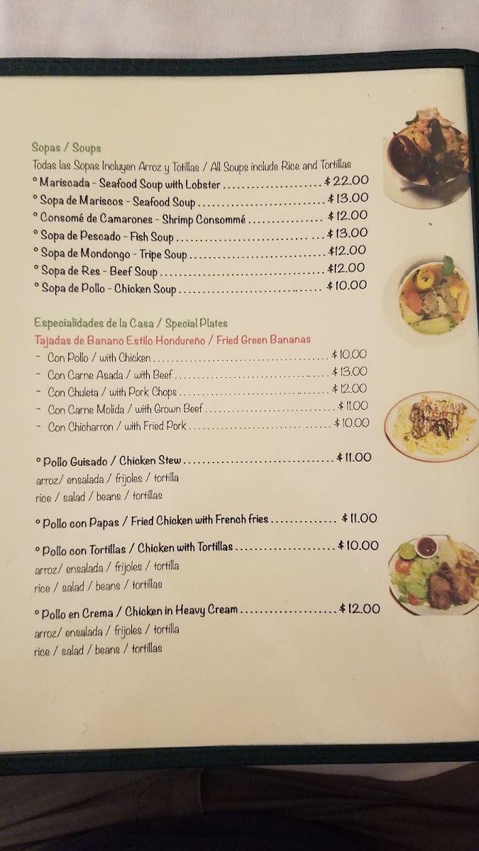 Menu highlights like Baleadas, Wet Burritos, and Carne Asada Fries capture the mix of hearty, familiar dishes alongside unique regional specialties such as Sopa de Mondongo Con Coco and Chuleta Con Tajadas. Pollo Asado adds a smoky, savory touch that pairs well with the welcoming atmosphere.